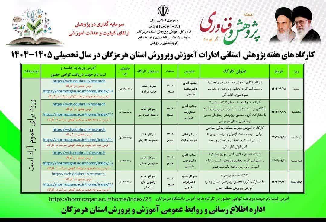 به مناسبت هفته پژوهش و فناوری کارگاه های آموزشی و دانش افزایی ویژه فرهنگیان و معلمان محترم...