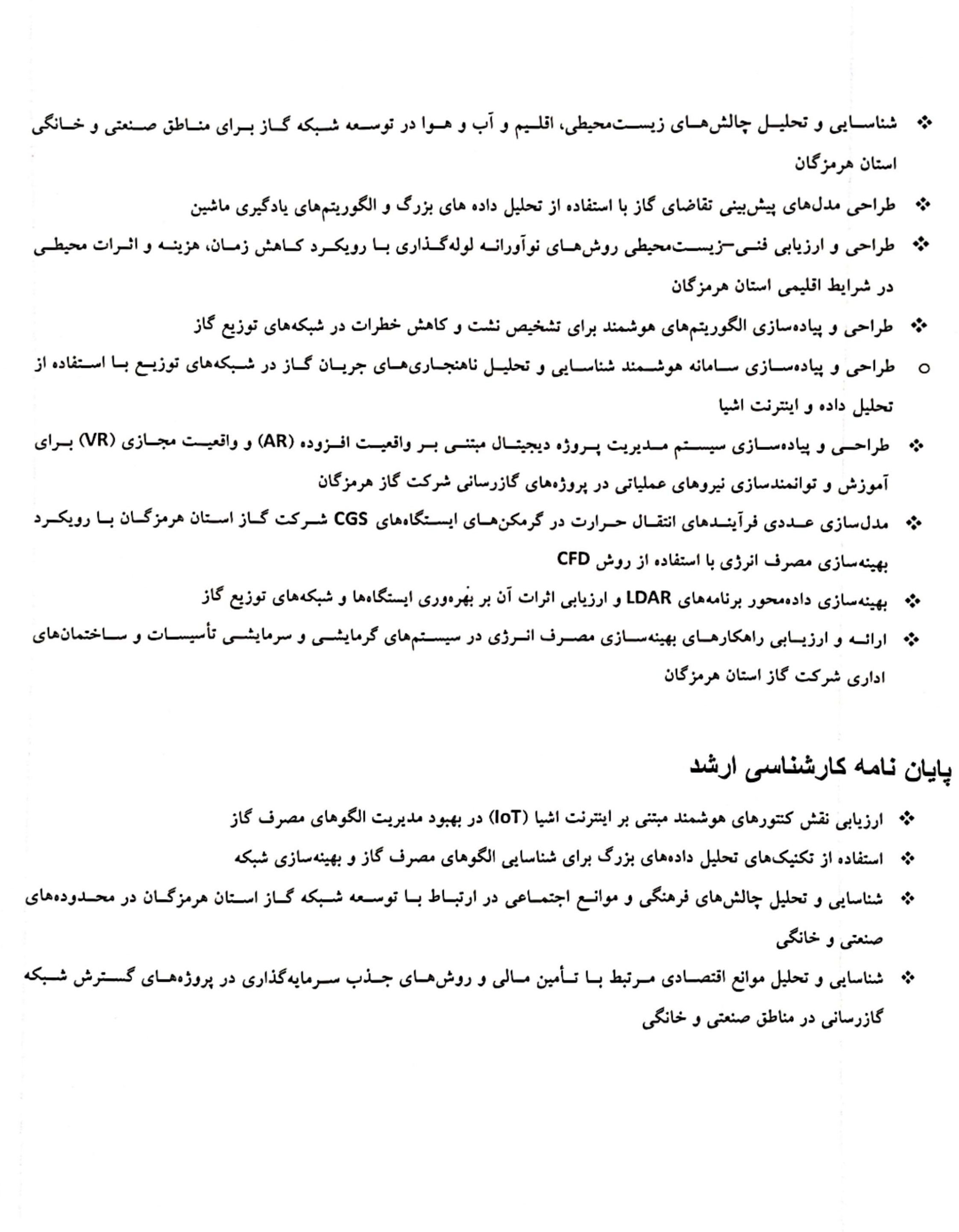 1- فهرست عناوین طرح های پژوهشی و پایان نامه و رساله های تقاضا محور مربوط به شرکت گاز استان هرمزگان در تصویر زیر قابل مشاهده است.